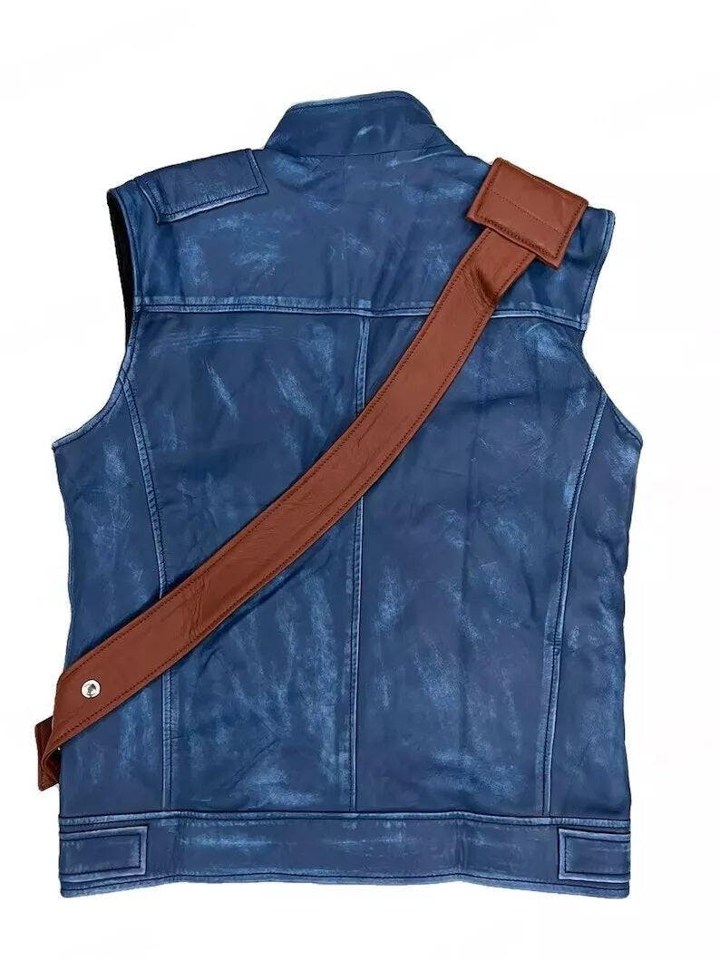 Step away from the ordinary. This Maverick Tactical Vest is crafted for those who demand gear that is both unique and functional. Made from distressed blue leather, this is the real-life version of the vest worn by explorers and adventurers in the wildest fictional universes. It’s the perfect blend of rugged utility and undeniable style, ready for your bike, your next convention, or your daily urban patrol.